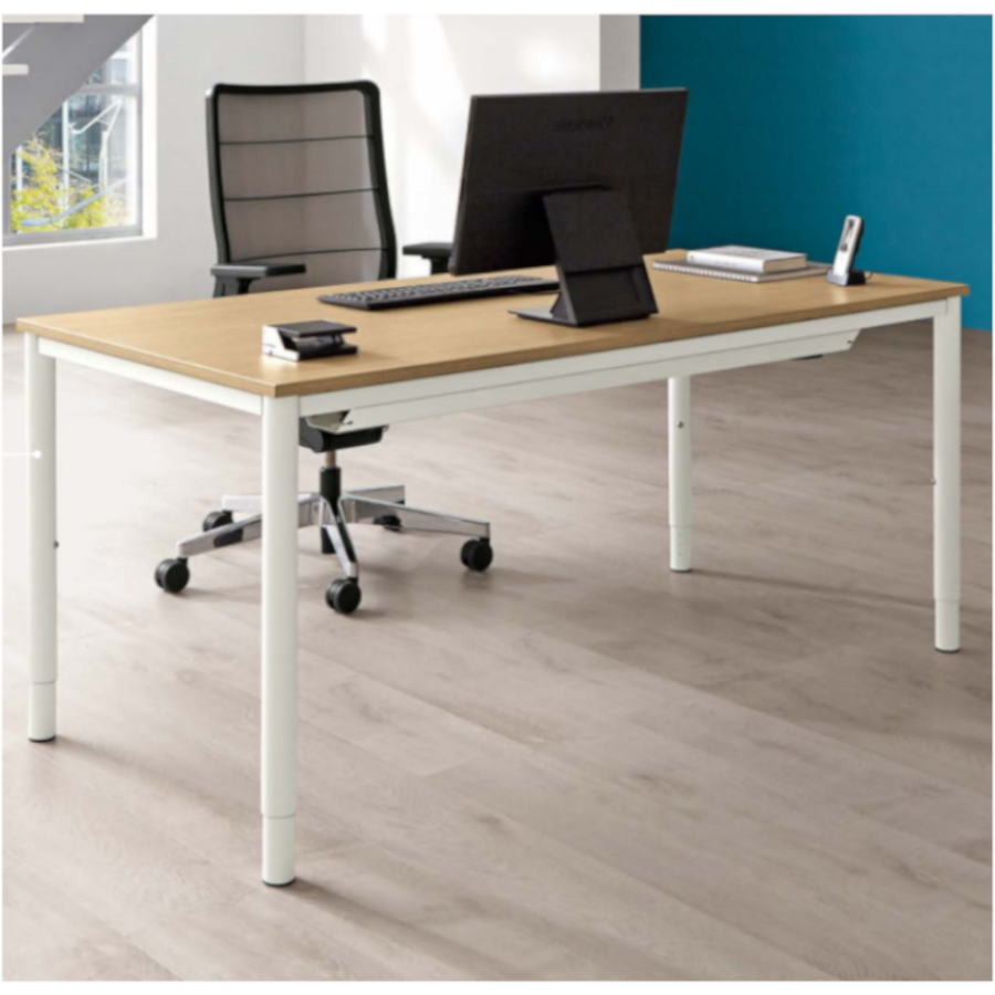 Dem SINAC sehr ähnlich sind auch die Modelle der SYSTO TEC Serie. Material- und Farbauswahl für Tischplatte und Gestell sind identisch und das Fußgestell gibt es ebenfalls wahlweise mit Rundrohren oder Quadratrohren. Im Gegensatz zu den SINAC-Schreibtischen sind die Schreibtischbeine bei den SYSTO TEC Tischen jedoch ohne Werkzeug höhenverstellbar. Mit dem SYSTO TEC bietet Palmberg eine weitere preiswerte Schreibtischlösung für das Büro.