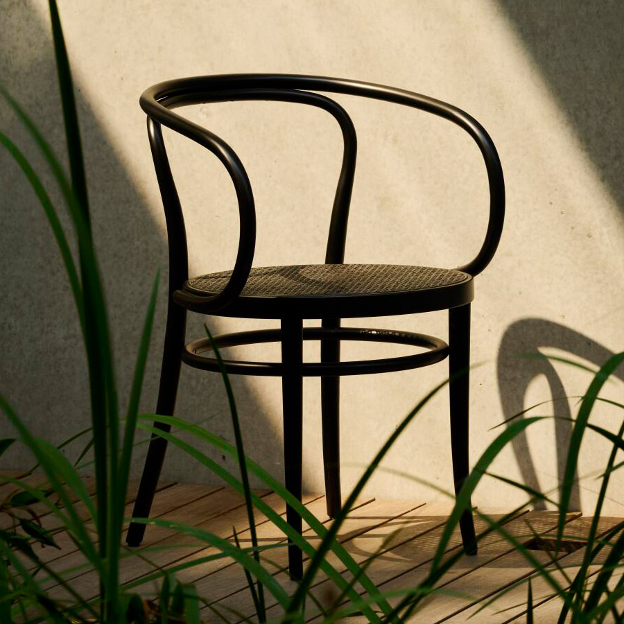 THONET 209 Bugholzarmlehnenstuhl Dark Melange | Rohrgeflecht-Sitz | Buche schwarz gebeizt
