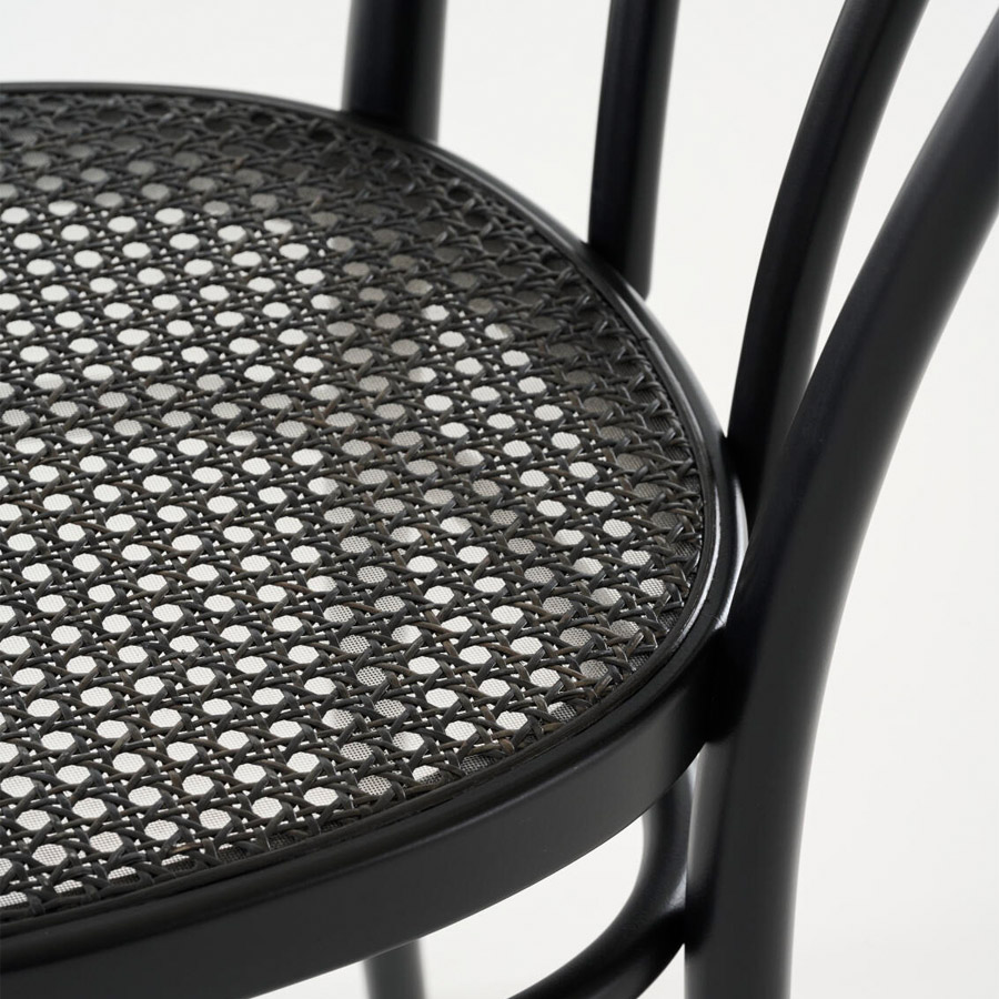 THONET 209 Bugholzarmlehnenstuhl Dark Melange | Rohrgeflecht-Sitz | Buche schwarz gebeizt THONET 209 Bugholzarmlehnenstuhl Dark Melange | Rohrgeflecht-Sitz | Buche schwarz gebeizt