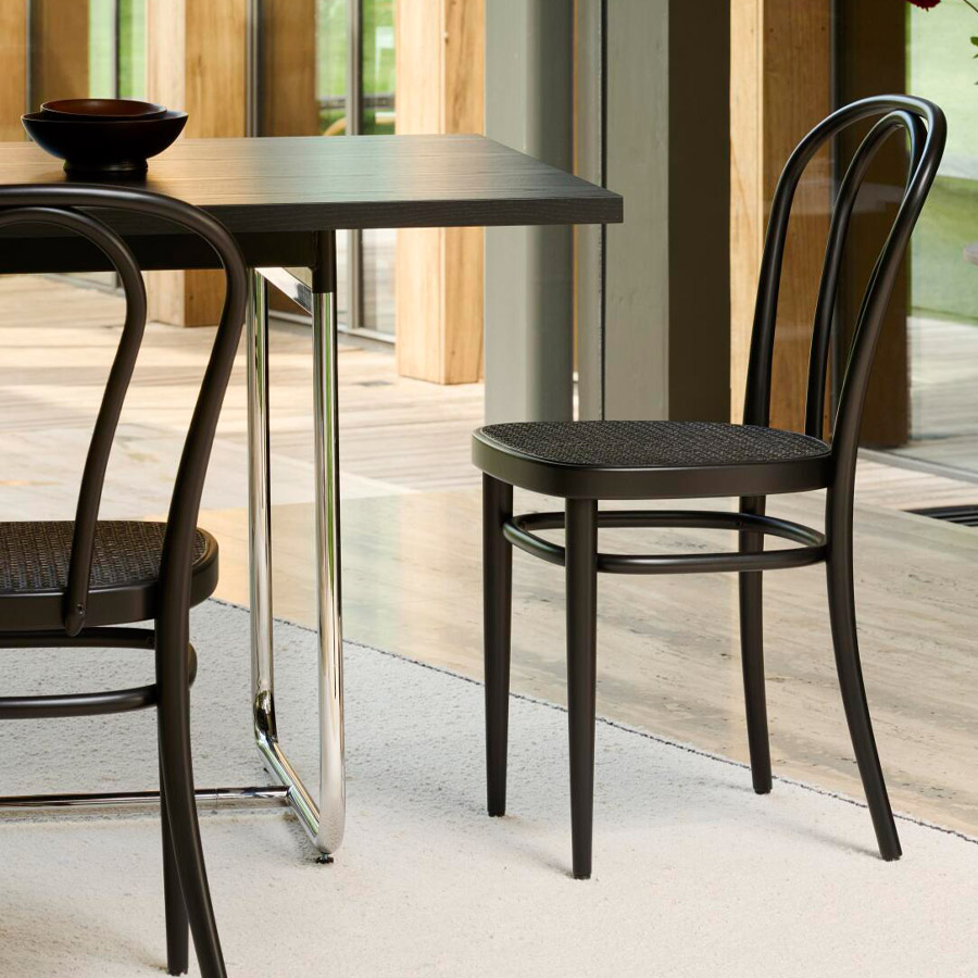 THONET 214 Bugholzstuhl Dark Melange | Rohrgeflecht-Sitz | Buche schwarz gebeizt THONET 214 Bugholzstuhl Dark Melange | Rohrgeflecht-Sitz | Buche schwarz gebeizt